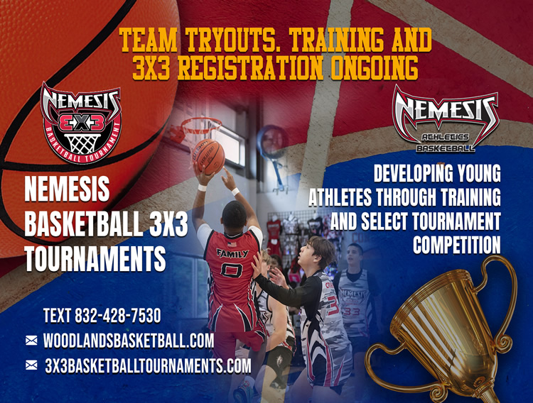 Nemesis Athletics is the premier select AAU basketball club and training organization of the Woodlands training boys and girls basketball teams of all ages located in Spring, The Woodlands, Conroe, Magnolia, Tomball and the surrounding areas. We train players to play competitive basketball in Middle, High School and eventually College, and to compete in life after basketball.